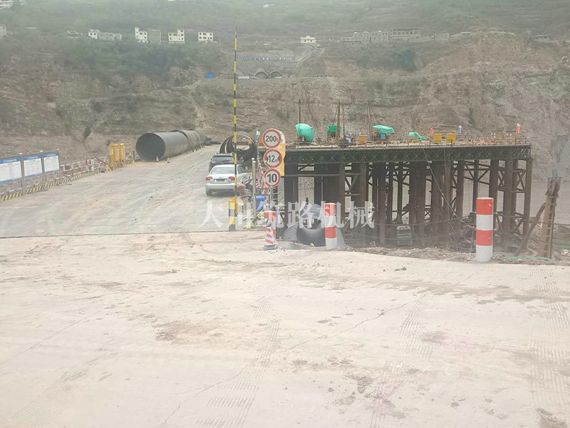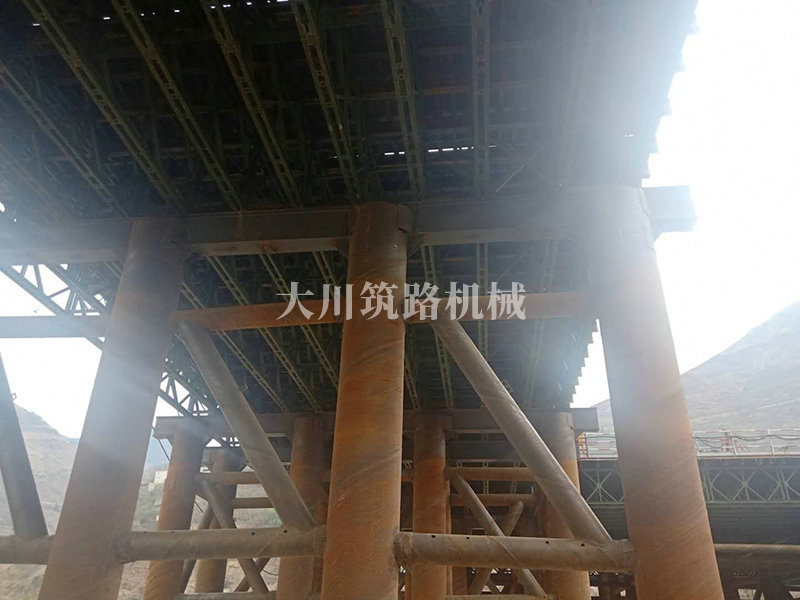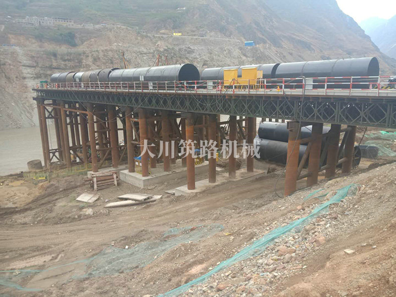 棧橋型號(hào):便橋采用(4×12m)+3m+9m+(2×12m)+3m,9跨貝雷架鋼便橋,橋梁全長88.7m,橋梁寬度12m。